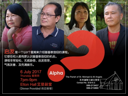 « All Events This event has passed. Church Alpha 2017 (Chi) August 10, 2017 @ 7:00 pm - 9:00 pm Event Navigation « Blood Donation Campaign Alpha Muda-Mudi (BM) » How Does God Guide Us? + Google Calendar+ iCal Export Details Date: August 10, 2017 Time: 7:00 pm - 9:00 pm Venue Elton Hall