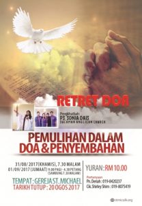 "Pemulihan Dalam Doa & Penyembahan" Yuran: RM10:00 Sila hubungi pejabat gereja untuk maklumat lanjut.